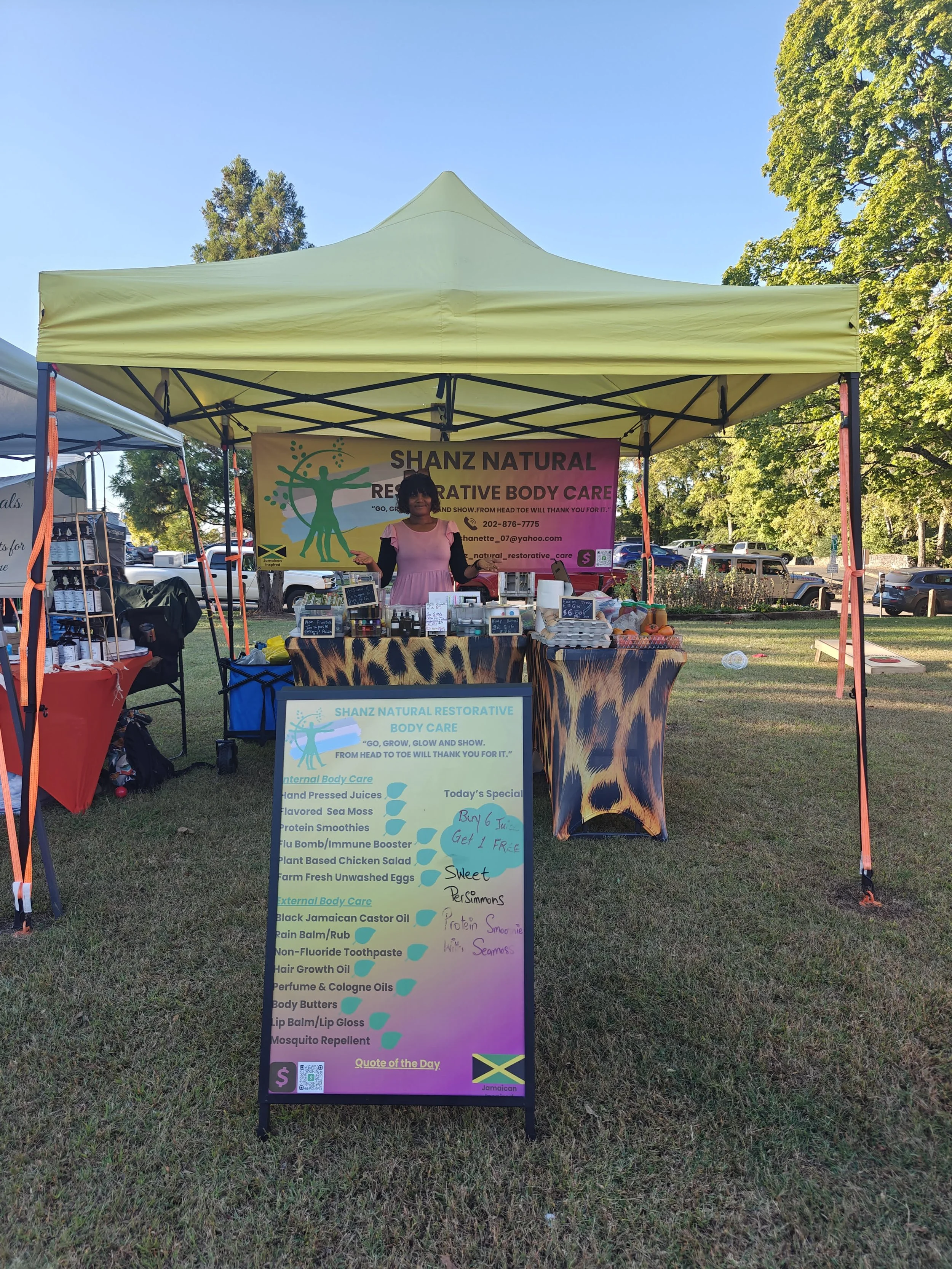 Valene offers a range of natural, handmade products designed to nourish your body from the inside out. From flavored sea moss, farm fresh eggs, fresh hand-pressed juices, and plant-based chicken salad, plant-based cheese cake, to rich shea body butters, homemade hair growth oils, castor oil, lip gloss, face moisturizers, natural mosquito repellent, and soothing pain balms—everything is made with care using wholesome, plant-based ingredients. With new products always in the making, their mission is simple: pure, natural care you can trust, so that from head to toe will thank you for it.